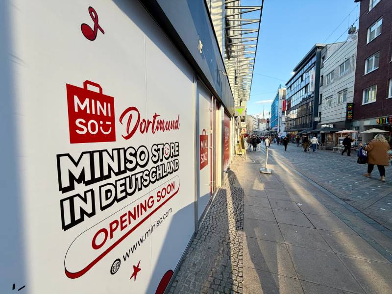 Die Einzelhandelskette Miniso wirbt mit einer Neueröffnung. © Schulze