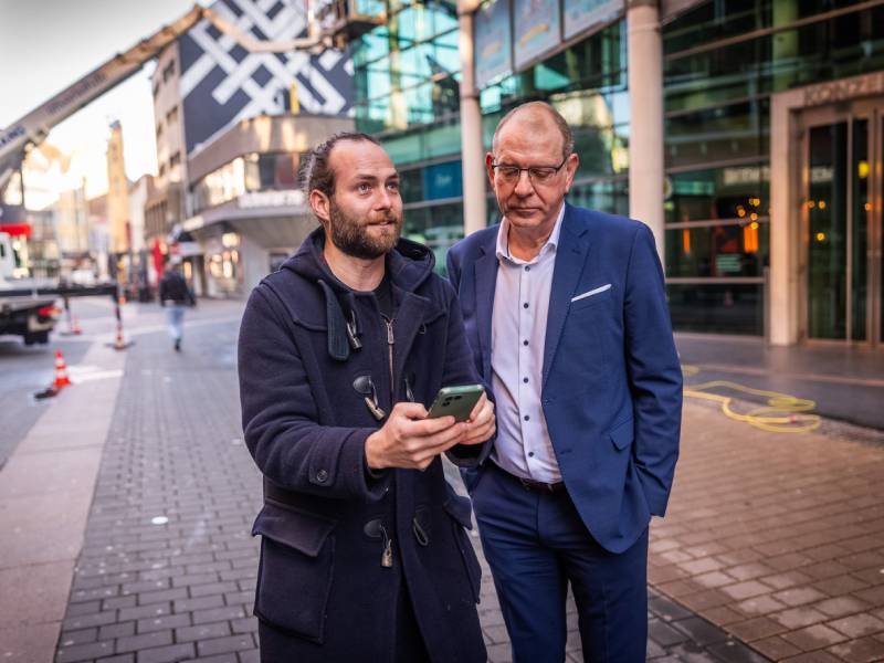 Felix Krämer (l.) zeigt Dirk Schaufelberger (r.), wie er sich die Brückstraße vorstellt. © Schütze